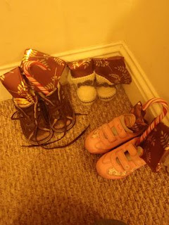 On the night of the 5th of December we used to also put out our shoes for St Nicholas to fill in the night.... and this is what the guys did here...