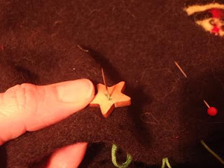 Now for the decorations. I had never needle felted onto fabric before so I thought it wise to have a wee practice first.