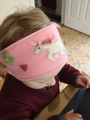 A needle felted unicorn hairband