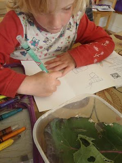 ...Rebe's been collecting bugs and marking them off in her book, and when they are not in her book she's adding them to the back herself.