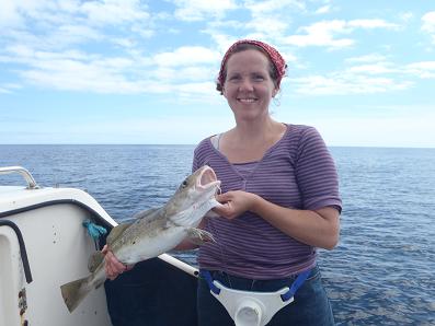 yay yay a 5lb cod!! Caught by me which is now in the fridge awaiting eating :-)