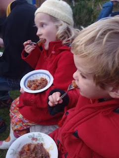 We are so welcomed there, although not part of the community the rest of the year, we are welcomed with open arms and drawn into the work of the celebration. The children were asked to help hand out song sheets and forks and silks for the dance. They were truly drawn into the celebration. The magic and the reverence for the evening was so clear to them and you could see it in their little faces and when they would skip over to me and hug my legs looking up with pleasure flushed in their cheeks.