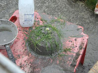 The weather has been fairly mild and I have been trying to get the kids out into the garden as much as possible. I think that outdoors and 'work' in the garden may just be the key to Joa. He is free there to do what he likes, to explore and run and fall and do stuff and I don't have to keep saying 'no'. So Benny and I decided to make a sand kitchen.