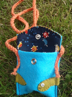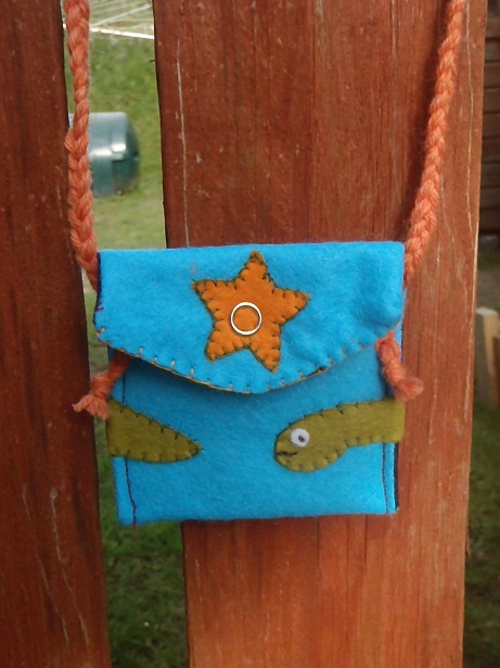 It has a strap made from plaited wool yarn and inside there is plenty of room for kisses and hugs and loves as well as a wee hanky or precious treasure.