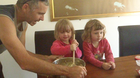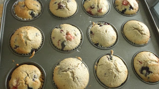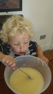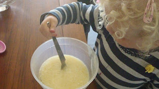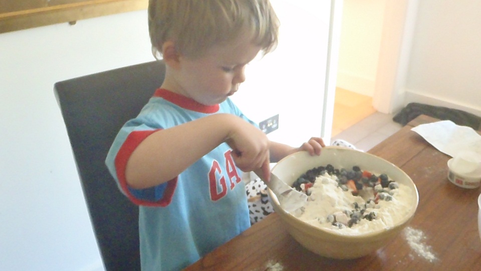 but with gorgeously purple fingers to show that there had been some berries picked!...I wonder where they all went!Amanda lead our next activity and after washing the berries and adding a few chopped strawberries and blueberries to bulk out our lack of berry, she made the most gorgeous muffins with the kids...