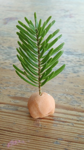 To make a Fairy Christmas tree take a snippet of fir. We found ours on the ground outside the supermarket where the Christmas Trees are sold, but perhaps you are lucky enough to have an evergreen forest near you, or just steal a little from your own tree.