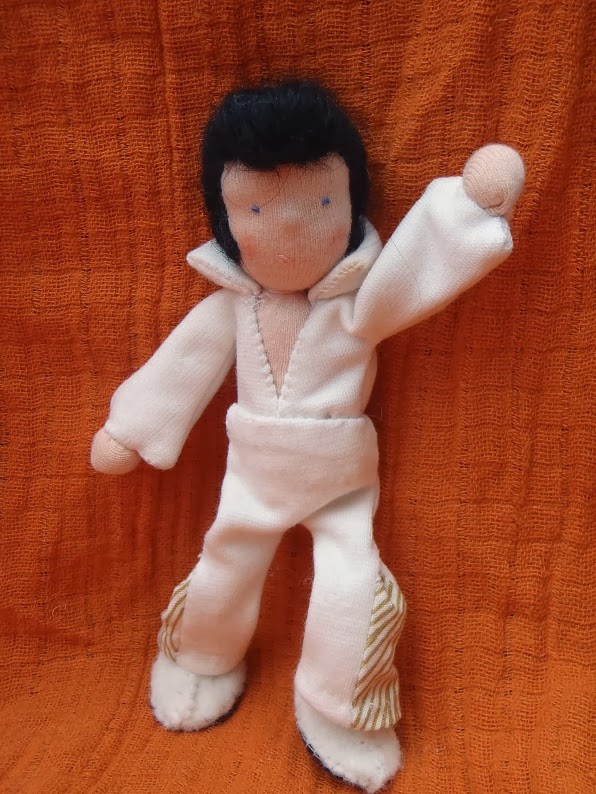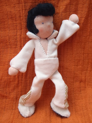 I really loved making him. He's about 5 inches tall including his hair ;-) and is complete with wiggly hips, flares and side burns.