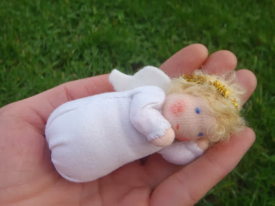 Just to let you know that to say thank you to the more than 1000 people who 'like' my wee Under Rainbows facebook page I am giving away this tiny angel doll...