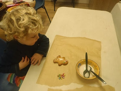 I set up a little table and the wee ones took it in turns to come over and decorate a gingerbread man or 2 with icing and sweeties,and then of course they ate them :-)