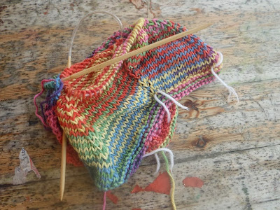 I've been knitting a rainbow bonnet for a special wee girl who's celebrating her first Christmas this year. It's my favourite pattern, very simple and super practical. The yarn was sent to me by my mum, it's a lovely bamboo/ wool blend making it really soft and comfy to wear, very important if you're still very little.
