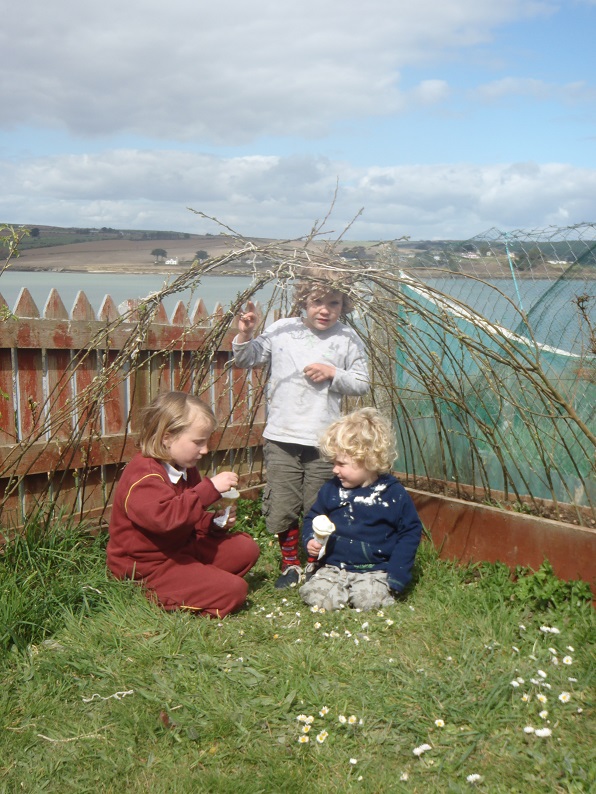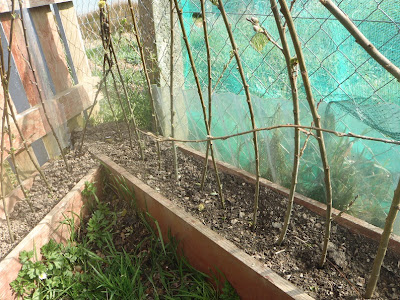 and tied the tops over. In a few weeks when the weather is more stable (please!) we will plant a little bean seed at the bottom of each branch and come the summer I imagine a shady and delicious den at the bottom of the garden. My garden guru also said the willow might well grow. So we will watch this living den with interest and see if my vision fulfills itself.