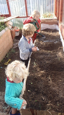 My garden ends in this funny little triangle. I have long wanted to make a bean tee pee for the kids, so today I thought I'd try and wee experiment...