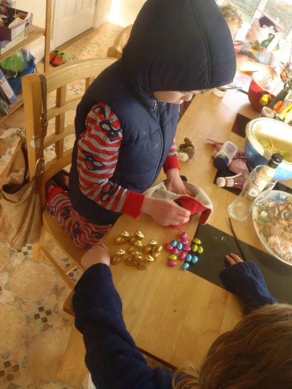 All is good here under rainbows. We've been very busy and also there has been a lot of poorlyness in the house hold, though thankfully everyone is on the mend again. We are into our second week of holidays and I hope this week to do a little more with the kids than recuperate, although that was what we needed last week. We're getting very ready for the new arrival, we hosted our last party on good friday, I have just finished the last doll I am going to do, we have a new (old) chest of drawers ready for all the tiny baby things we have sorted and are going to wash this week, the house is pretty organised, some meals are going into the freezer and garry is cleaning the carpets and windows (as well as doing all the garden work). It feels good to be at this stage, there is still a fair bit to be done but not too much. I feel myself starting to turn inwards and wanting to do less that pulls me out of the quiet space I am starting to crave.