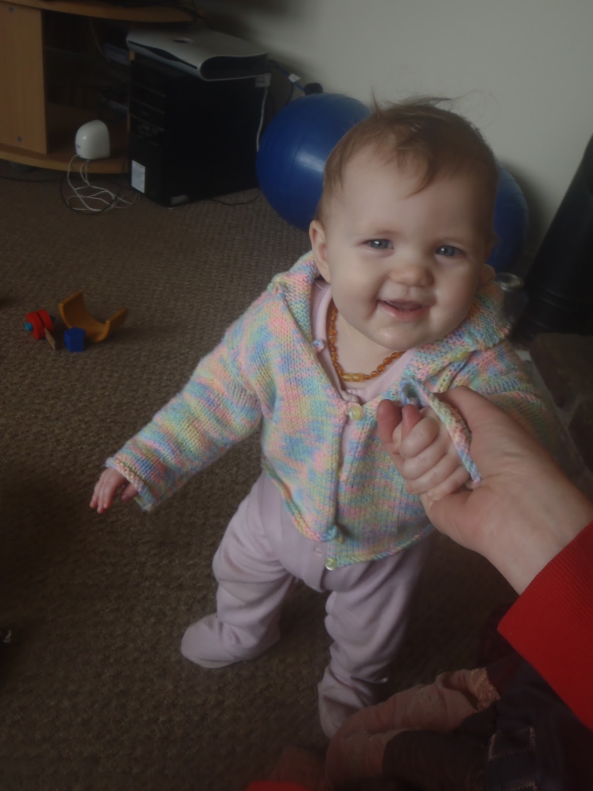 You pull up to stand, delighted with yourself and take big, clumsy steps with a grin on your face. You will never hold on with 2 hands, always letting go with one, preferring to feel your own balance.
