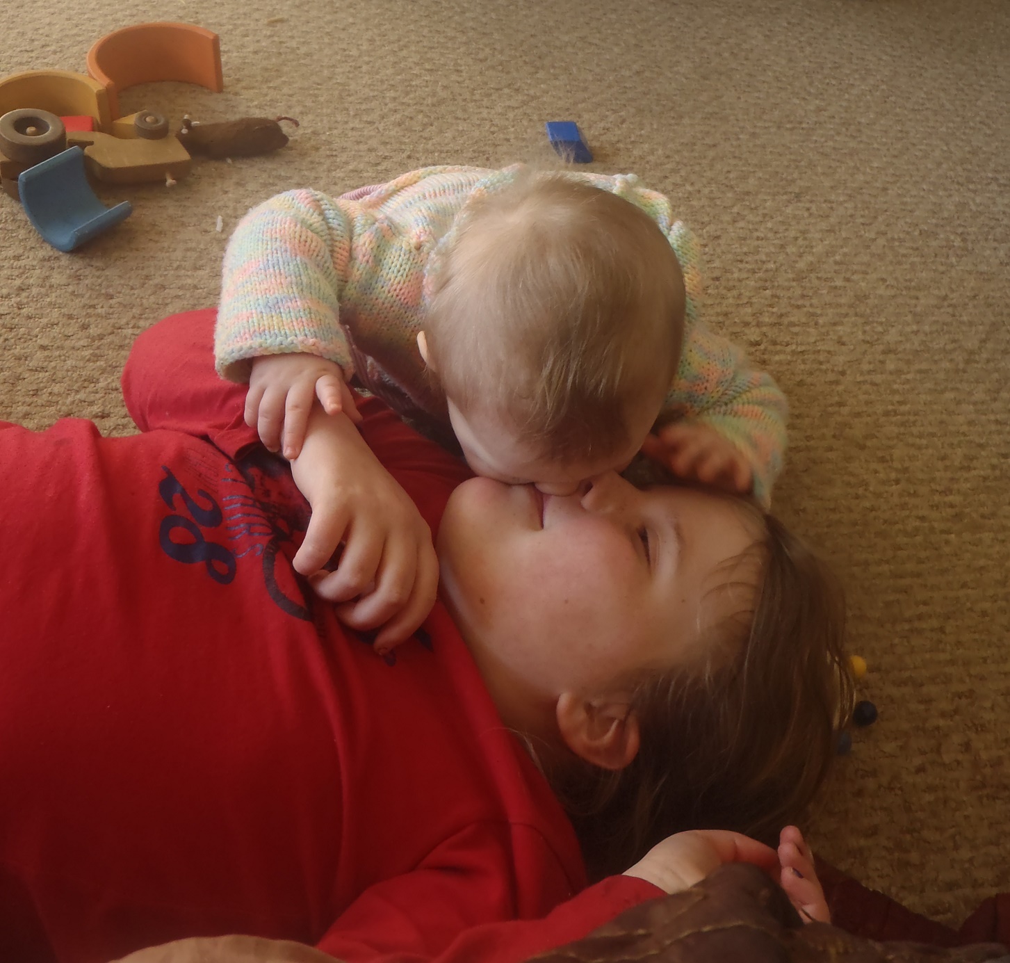 You love kids and babies. Kissing your older brothers and sister and watching them with concern on your face if they are upset. When we are with other babies you try to get to them, to touch them and coo at them, and if she cries then you cry too.